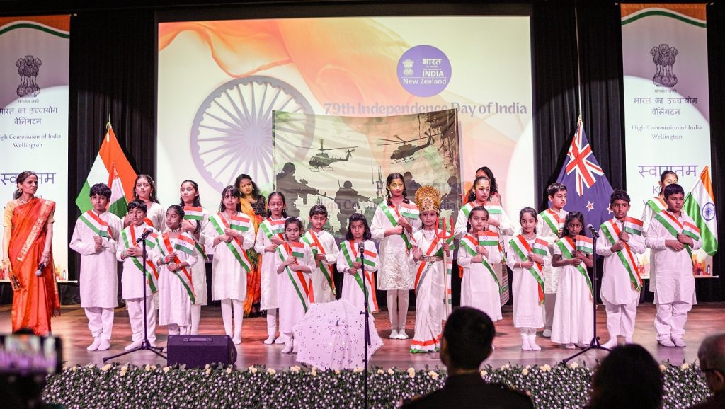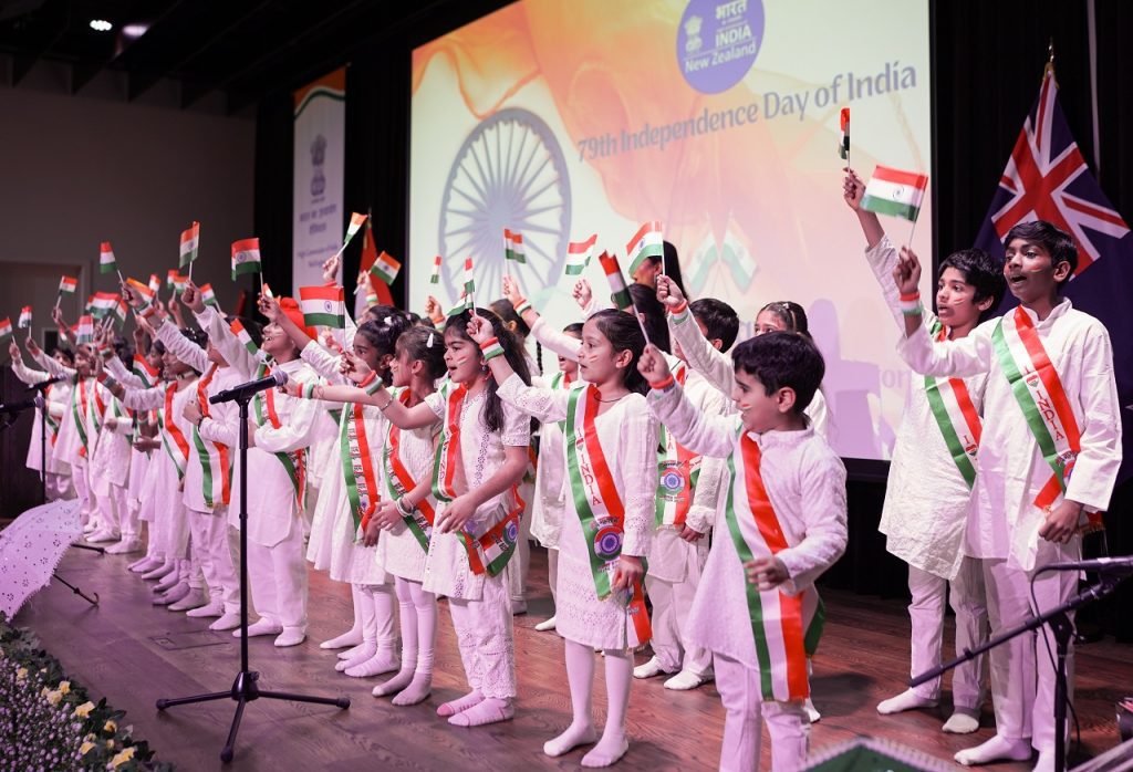 વેલિંગ્ટનમાં ભારતીય હાઈ કમિશને 15મી ઓગસ્ટ, 2025ના રોજ ચાન્સરી પરિસરમાં ધ્વજવંદન સમારોહ સાથે ભારતના 79મા સ્વતંત્રતા દિવસની ભવ્ય ઉજવણી કરી હતી. આ સમારોહમાં ભારતીય અને કિવી સમુદાયના સભ્યો, શાળાના બાળકો, ભારતીય મૂળના લોકો અને ભારતના મિત્રો ઉપસ્થિત રહ્યા હતા.