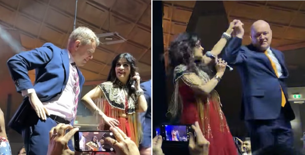 PM ક્રિસ્ટોફર લક્સન અને લેબરના ક્રિસ હિપકિન્સ ભારતીય સમુદાયને આકર્ષવા બોલિવૂડના રંગે રંગાયા